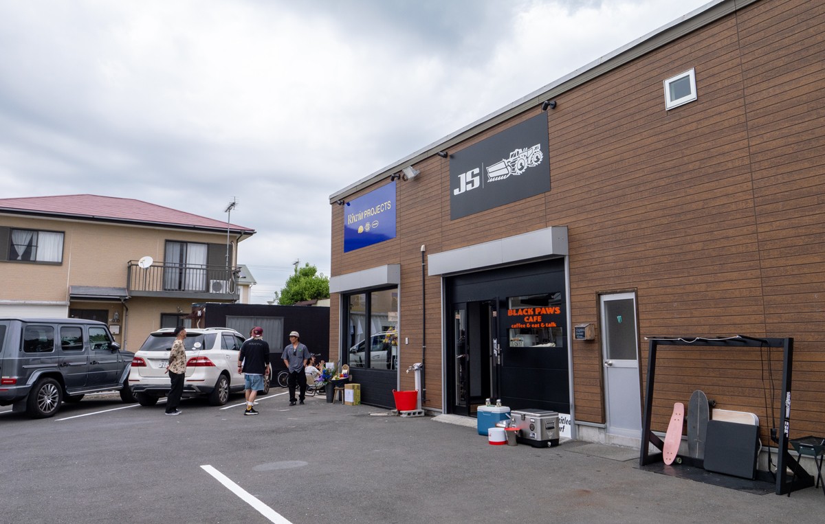 JS Industries Japanの日本代理を担っている、ショールームとして、より多くのサーファーが来やすく、居心地よくいられるようカフェも併設されたスペース。