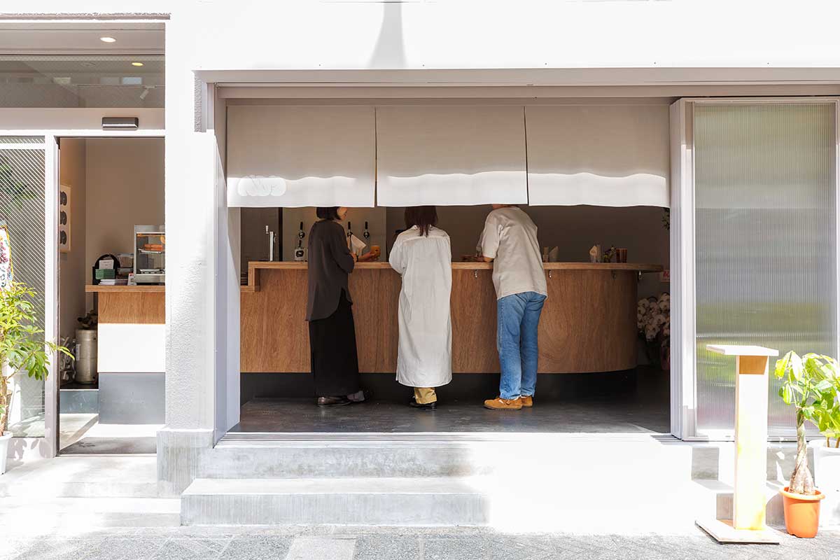 カウンターを囲むU字型の立ち飲みスペースは、初めての人でも入りやすく、自然と会話が生まれるオープンな設計。